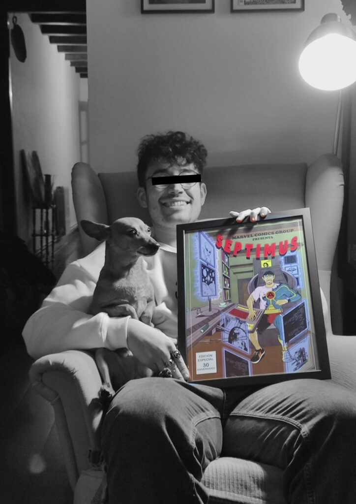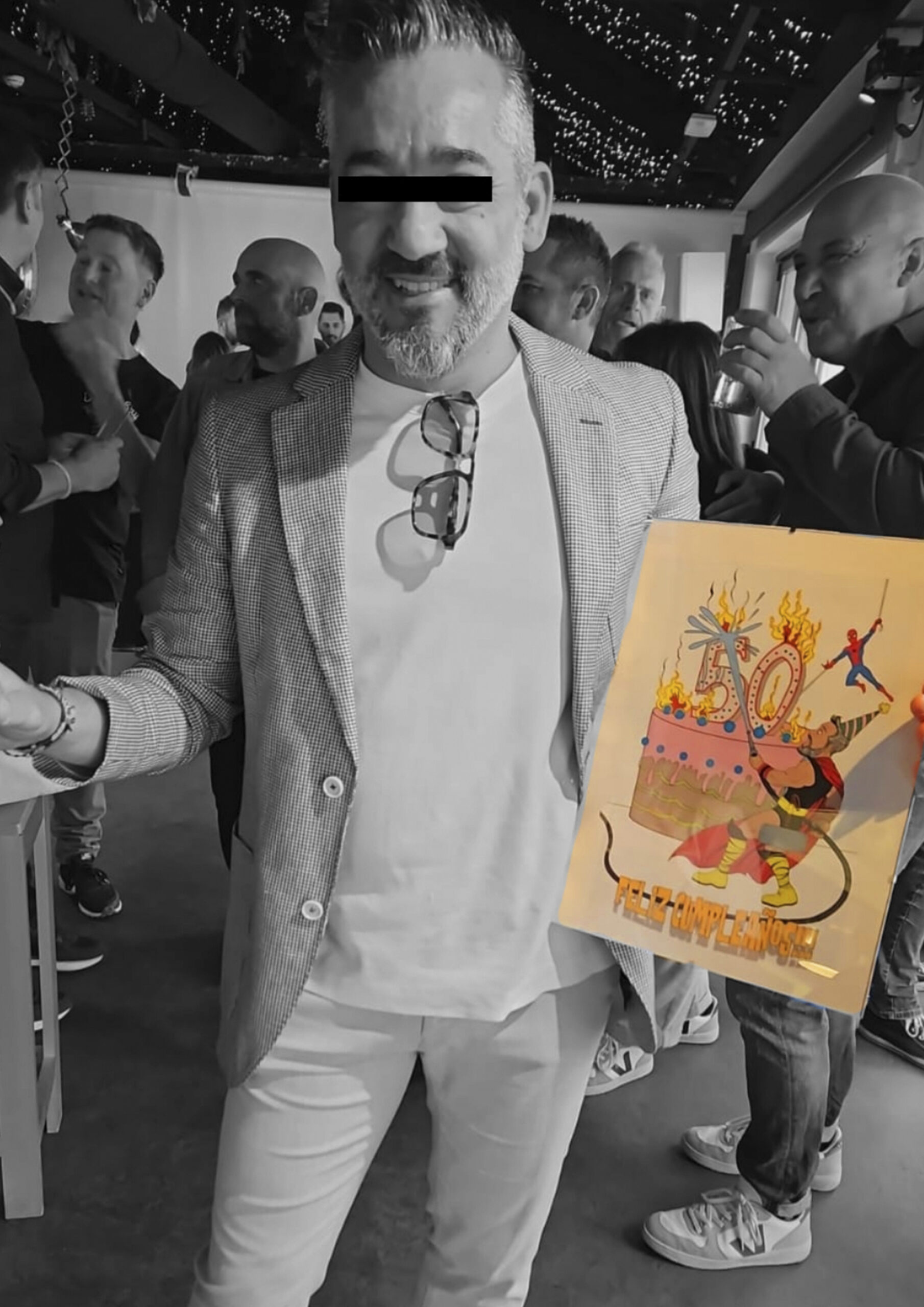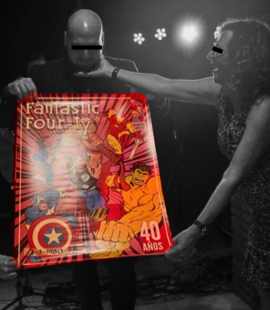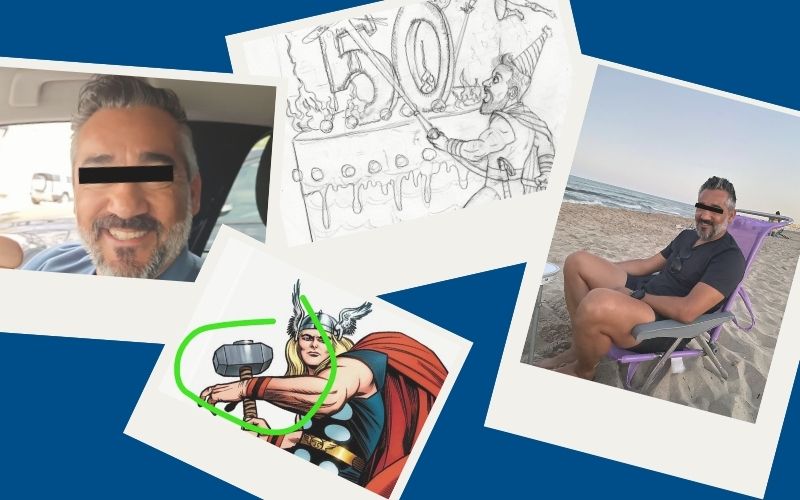 El protagonista de esta historia cumplía 40 años y, en su fiesta, le regalaron un póster que me encargaron, simulando una portada de Marvel con él en el centro, ¡como si fuera el mismísimo Thor!